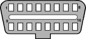 Search for a 16-pin D-shaped connector that will match the adapter. The connector should be located in or near the interior dashboard close (within 1 m or 3 ft) to the steering wheel.